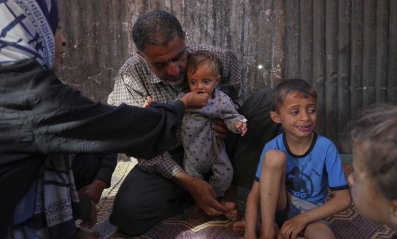 خالد ۹ ماهه به سختی ۵ کیلوگرم (۱۱ پوند) وزن دارد – نصف وزنی که یک نوزاد سالم در سن او باید داشته باشد. و در بخش اصلی بیمارستان کودکان در غزه، در حالی که پزشکان تلاش می کنند پسرش را نجات دهند، وداد عبدالعال فقط می تواند تماشا کند.